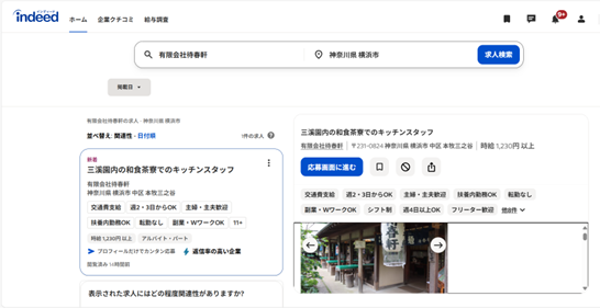 <待春軒:Indeed求人募集サイト> この求人情報はどなたでも閲覧可能です。 但し、実際にご応募頂く際には「Indeedへの登録・ログイン」 または「リクルートIDの登録」のいずれかが必要となります。 ※リクルートIDをお持ちでない方は、閲覧 ⇒ 応募に進まれる際に 事前に「Indeedへの登録・ログイン」をお願い致します。 閲覧画面中の「応募画面に進む」を押していただくと、 Indeedアカウント作成画面に移動しますので、 ご利用になるアドレス(Gmail・LINEなど)を入力し、 続けて操作頂くことで登録が可能です。